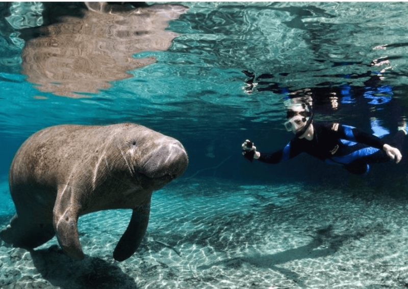 During the summer, from April to November, visitors might spot up to 30 manatees. And while there are strict rules on how to interact with the gentle creatures, guests can swim, kayak, and canoe with the manatees on a scheduled tour.