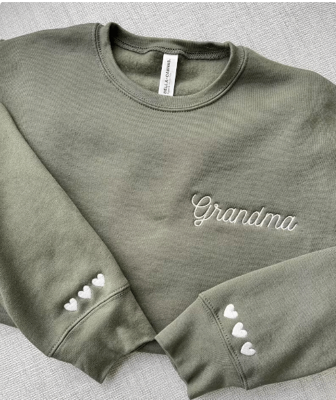 To wear her words on her sleeve: An embroidered crewneck sweatshirt, or a custom bracelet.
