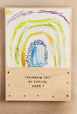 Personalized wooden wall print of child’s drawing for moms who appreciate presents and are sentimental.