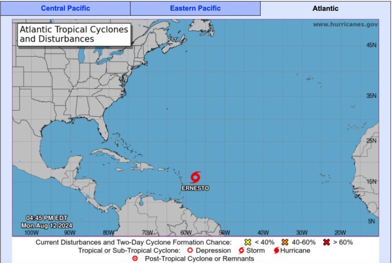 The potential cyclone five is expected to become tropical storm Ernesto by Tuesday morning.