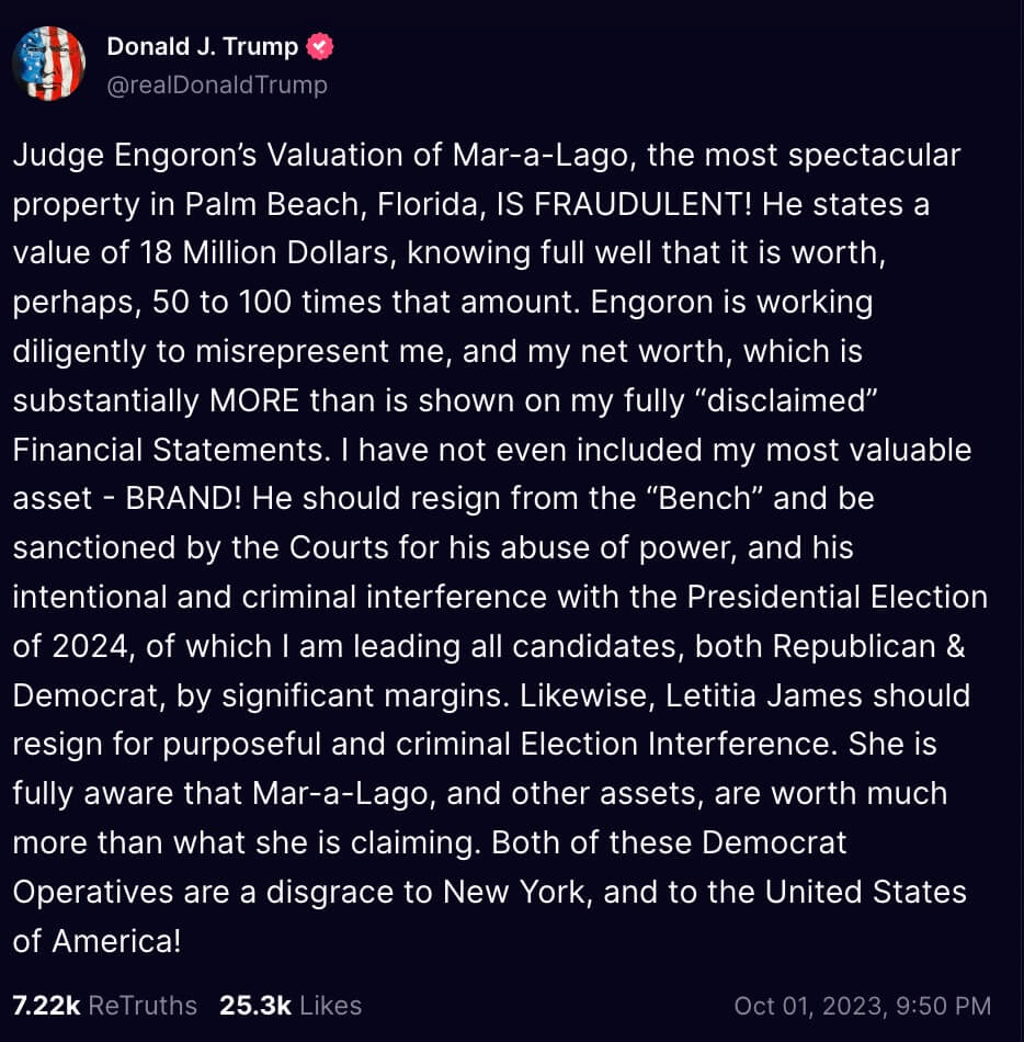 And closed out the month of September by once again attacking the prosecutors investigating him and Republicans who don’t bend the knee to him.
